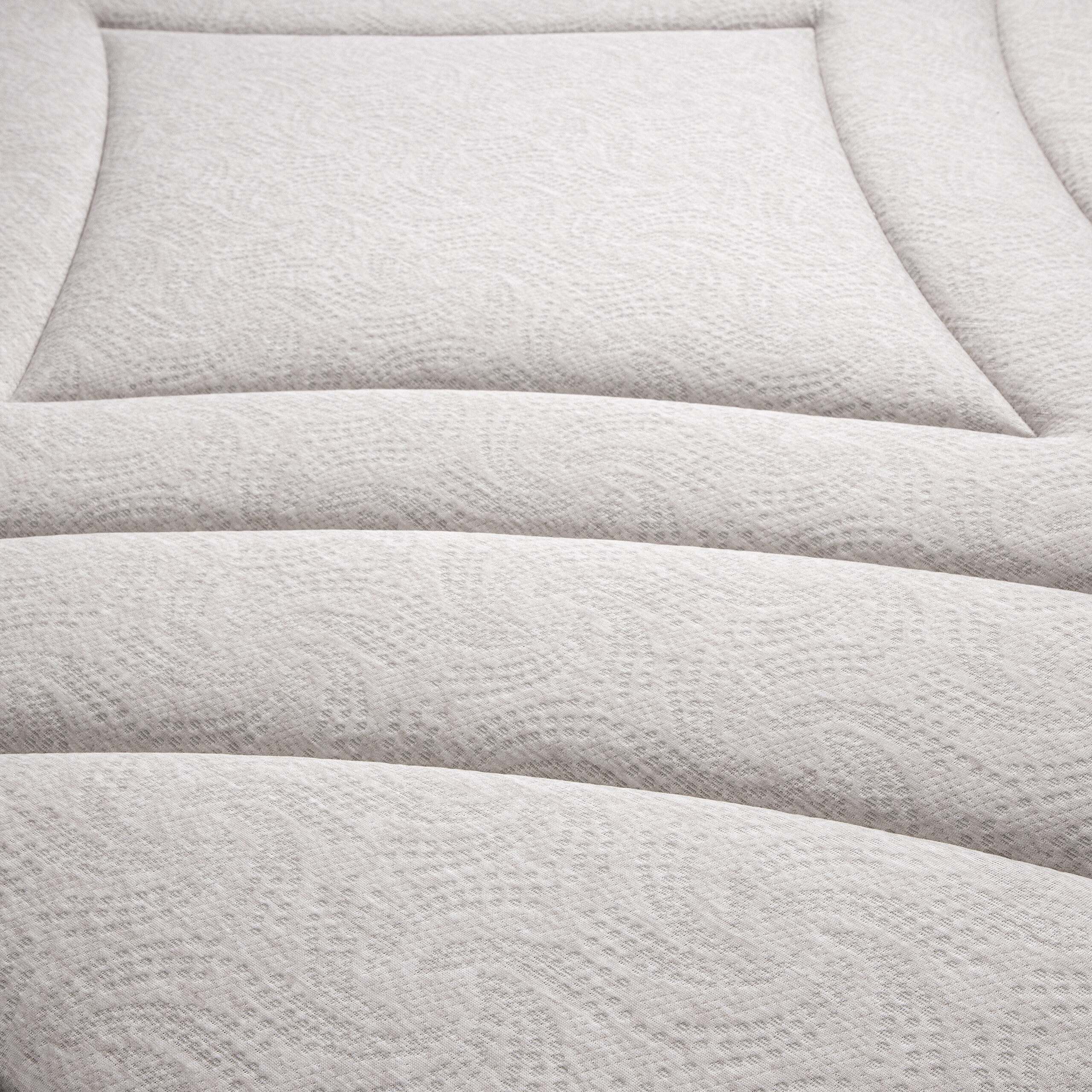 Revestimento do tampo em tecido Malha, com 275g/m2 que proporciona um toque extremamente macio e confortável. Destaca-se também o exclusivo desenho de bordado quadro a quadro.