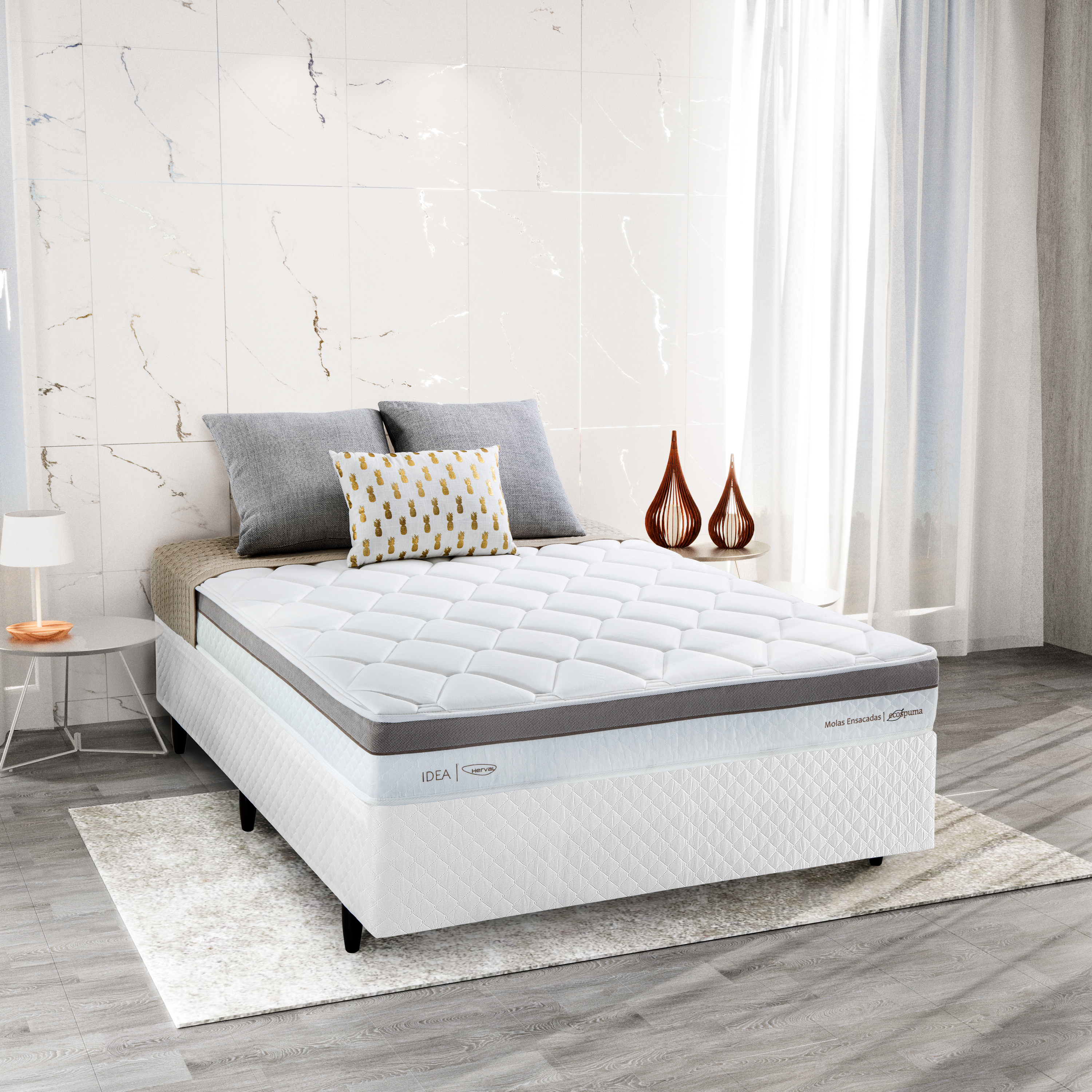 Este colchão conta com a exclusiva EcoSpuma®. É a espuma mais sustentável da Herval. Feita de uma manta de espumas aglomeradas, 90% da sua composição são retalhos que seriam destinados a aterros industriais. A EcoSpuma® é uma espuma de alta densidade, garantindo uma sustentação mais uniforme e menos chance de deformação, o que aumenta a vida útil do seu colchão Herval.